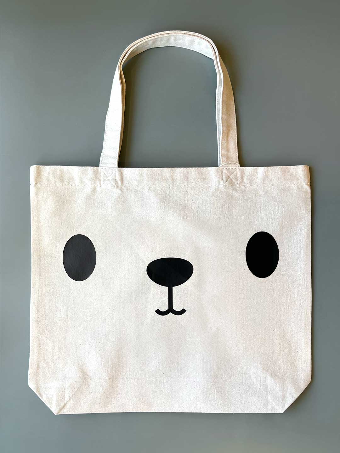 A spacious and stylish tote bag with print on the front. The sturdy recycled canvas used in this bag is undyed and in its raw form, without chemicals from dyeing or bleaching, making it a lower-impact choice.