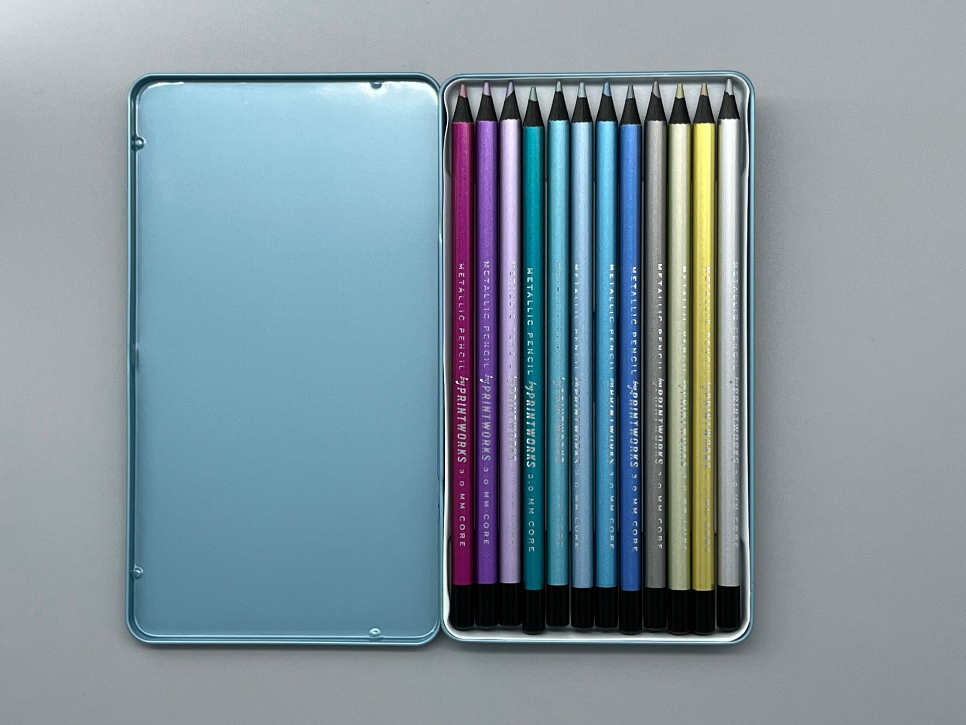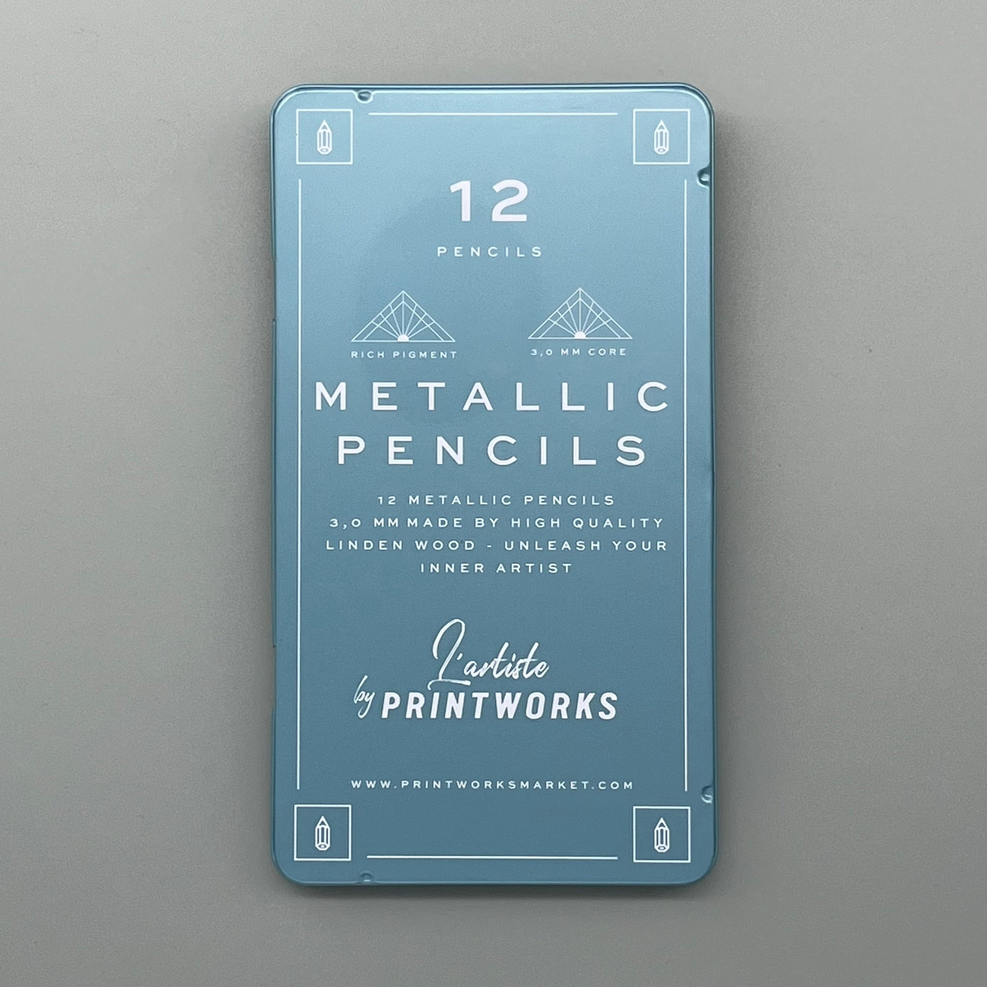 Super soft and long lasting colour pencils L'artiste by Printworks. Beautiful tin box containing 12 pencils in different colours. Extra thick 4 mm core. Easy to sharpen without breaking. Made by linden wood. Designed in Sweden.