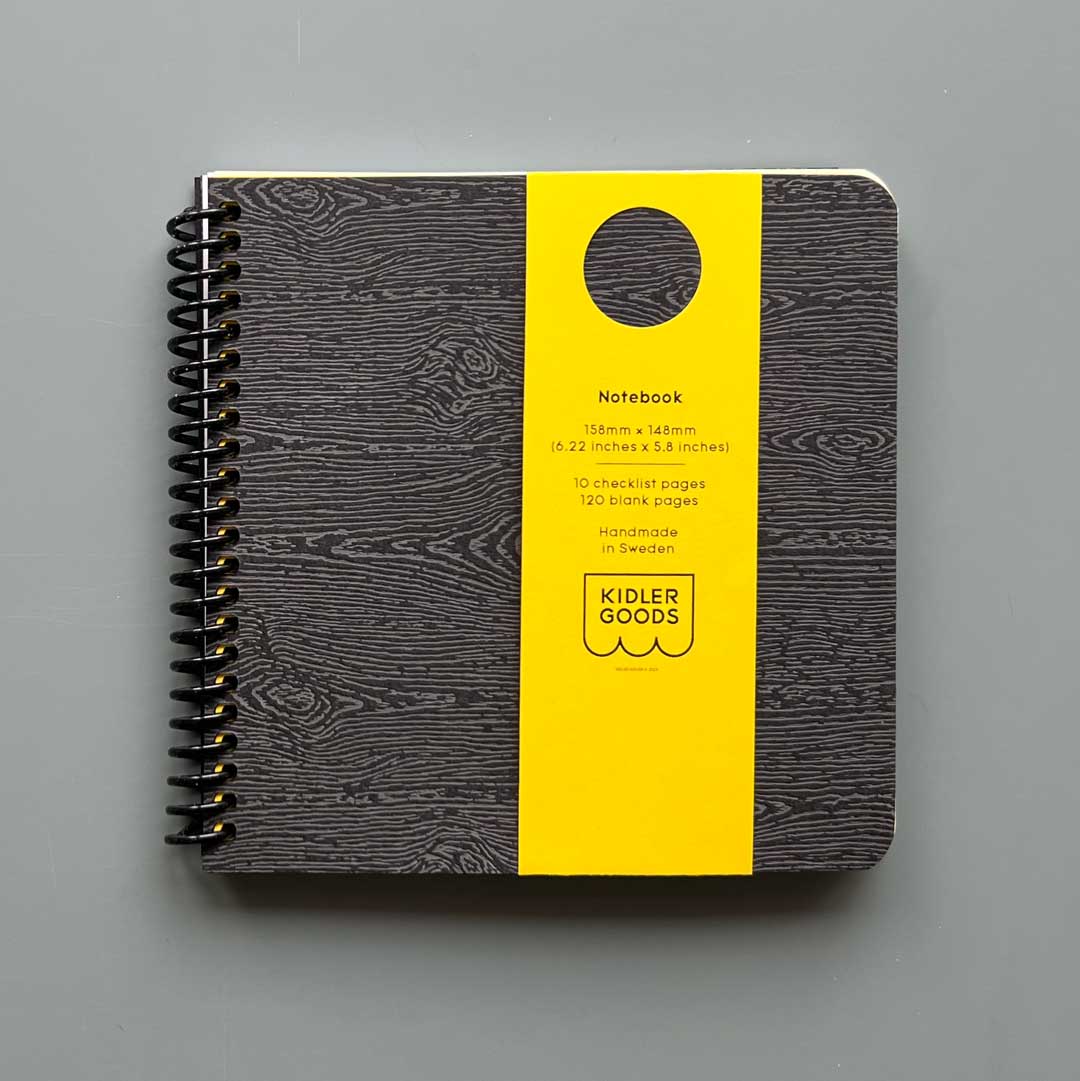 Kidler Goods notebooks are handmade in our workshop. Unique cover in embossed wood grain paper that looks and feels like actual wood. Contains 10 practical checklist pages and 120 blank pages where your pens can roam freely. Flexibel spiral binding allows the pages to be opened a full 360 degrees (cover to cover) and still lay flat. Great if you're left-handed like us! We think they are the perfect size.