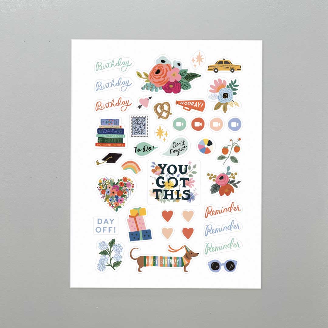 Give your journal a touch of whimsy with these charming illustrated stickers from Rifle Paper Co. 3 sheets full of fun stickers, great for bullet journaling or decorating gift wraps, envelopes and notebooks.