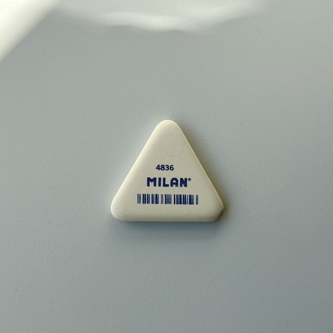 Flexible synthetic rubber eraser used to erase graphite pencil strokes from all types of paper. Designed for line drawing and precise erasing. Milan, model 4836.