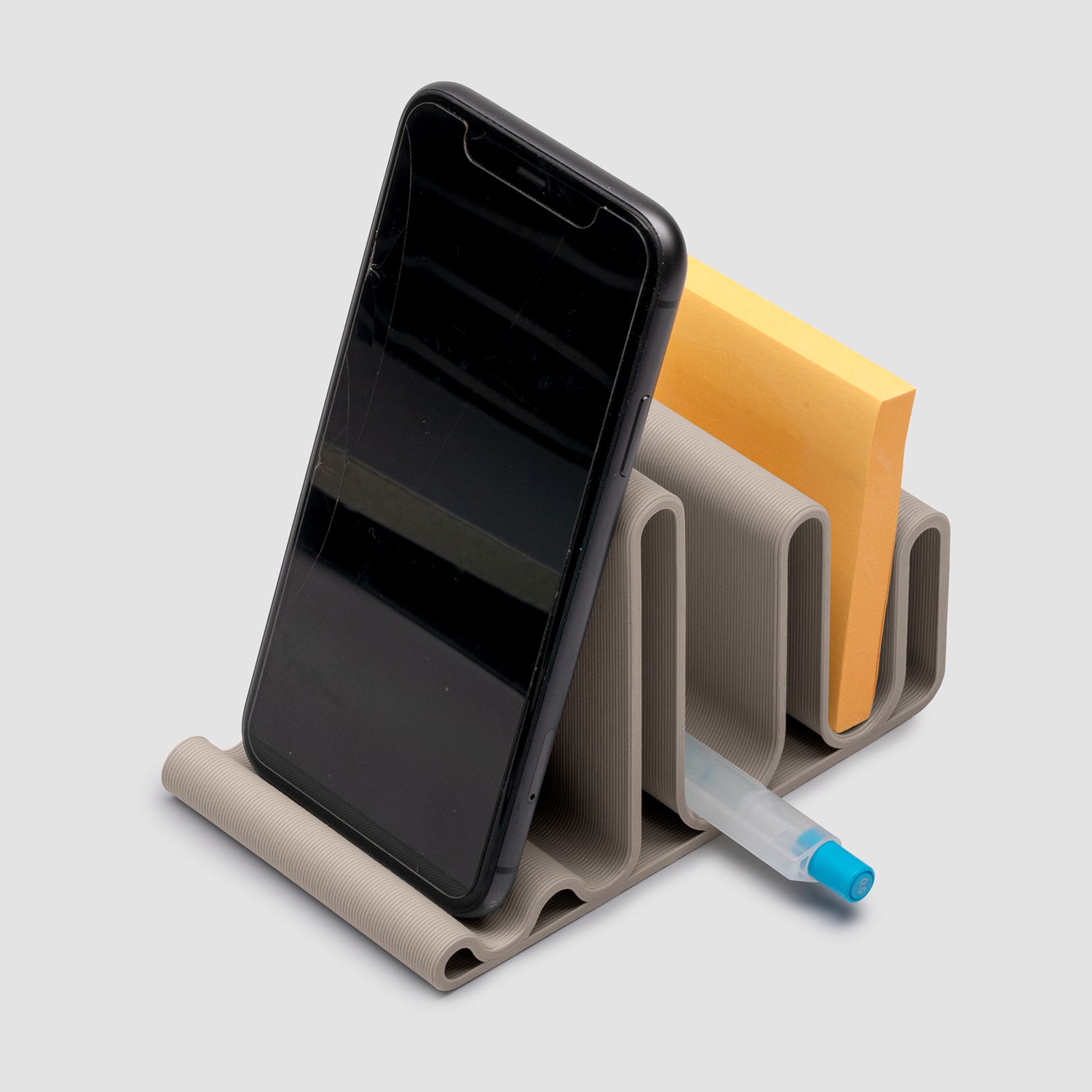 Kan det finnas något bättre sätt att hålla mobilen och annat viktigt inom räckhåll än på detta vågiga ställ? Den här lekfulla förvaringsserien är 3D-printad av återvunnet förpackningsmaterial av växtbaserad plast. Kombinera stället med andra enheter från bFRIENDS kollektion för att hålla snyggt och ordning på ditt skrivbord!