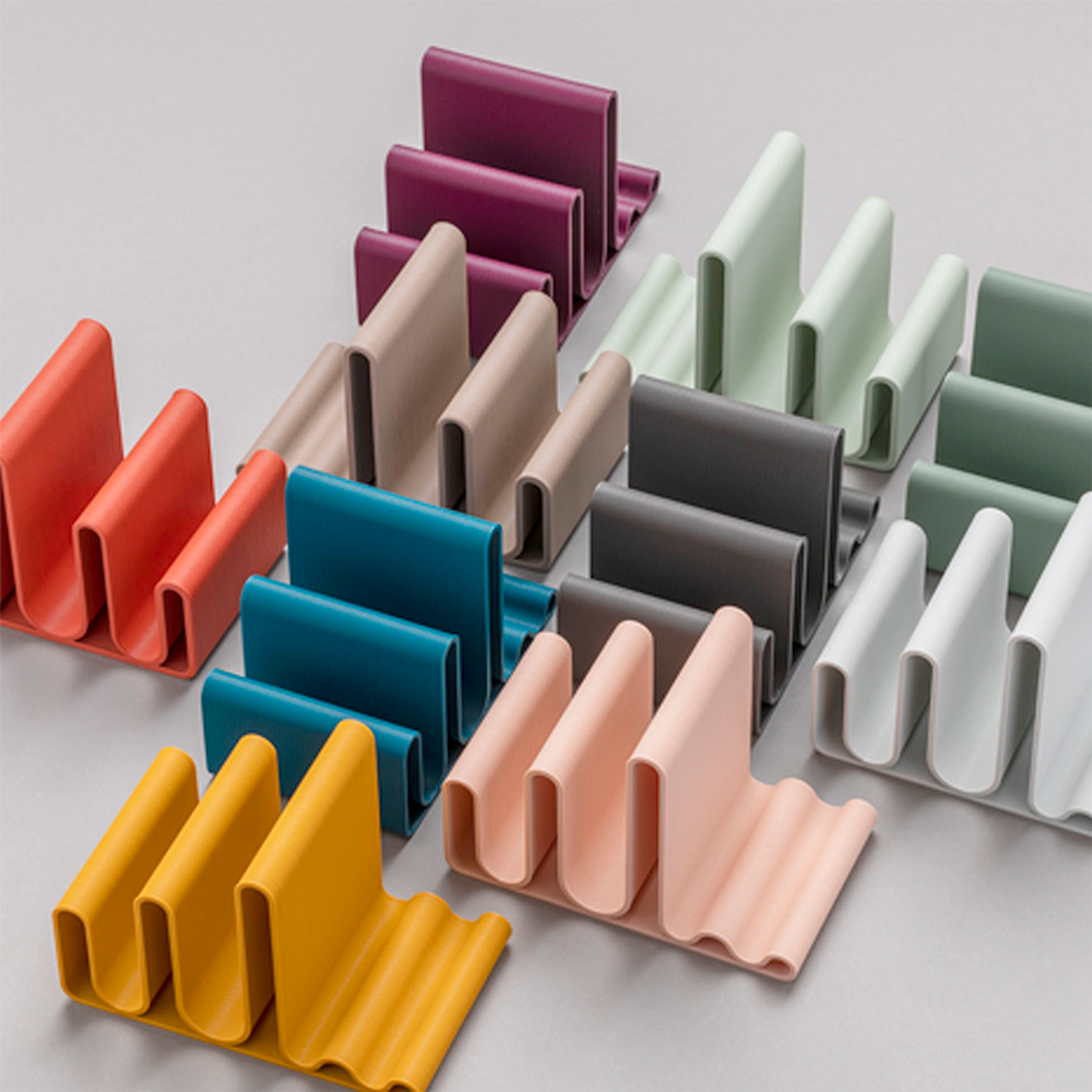 Kan det finnas något bättre sätt att hålla mobilen och annat viktigt inom räckhåll än på detta vågiga ställ? Den här lekfulla förvaringsserien är 3D-printad av återvunnet förpackningsmaterial av växtbaserad plast. Kombinera stället med andra enheter från bFRIENDS kollektion för att hålla snyggt och ordning på ditt skrivbord!