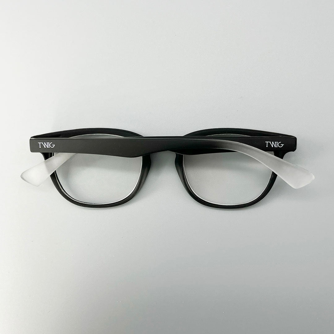 Blunt läsglasögon är en lätt modell med retrovibe. Mattsvarta med flexande skalmar som gör dem mycket bekväma att bära.