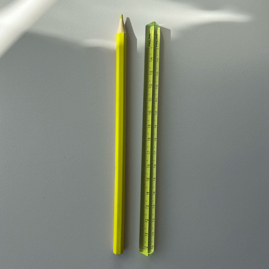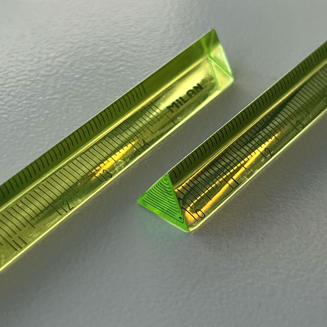 Färgglad trekantig linjal i genomskinlig plast med 15 cm mätmarkeringar. Finns i gult, orange, mintgrön eller lila. Den smala designen gör att den lätt får plats i de flesta pennfodral.