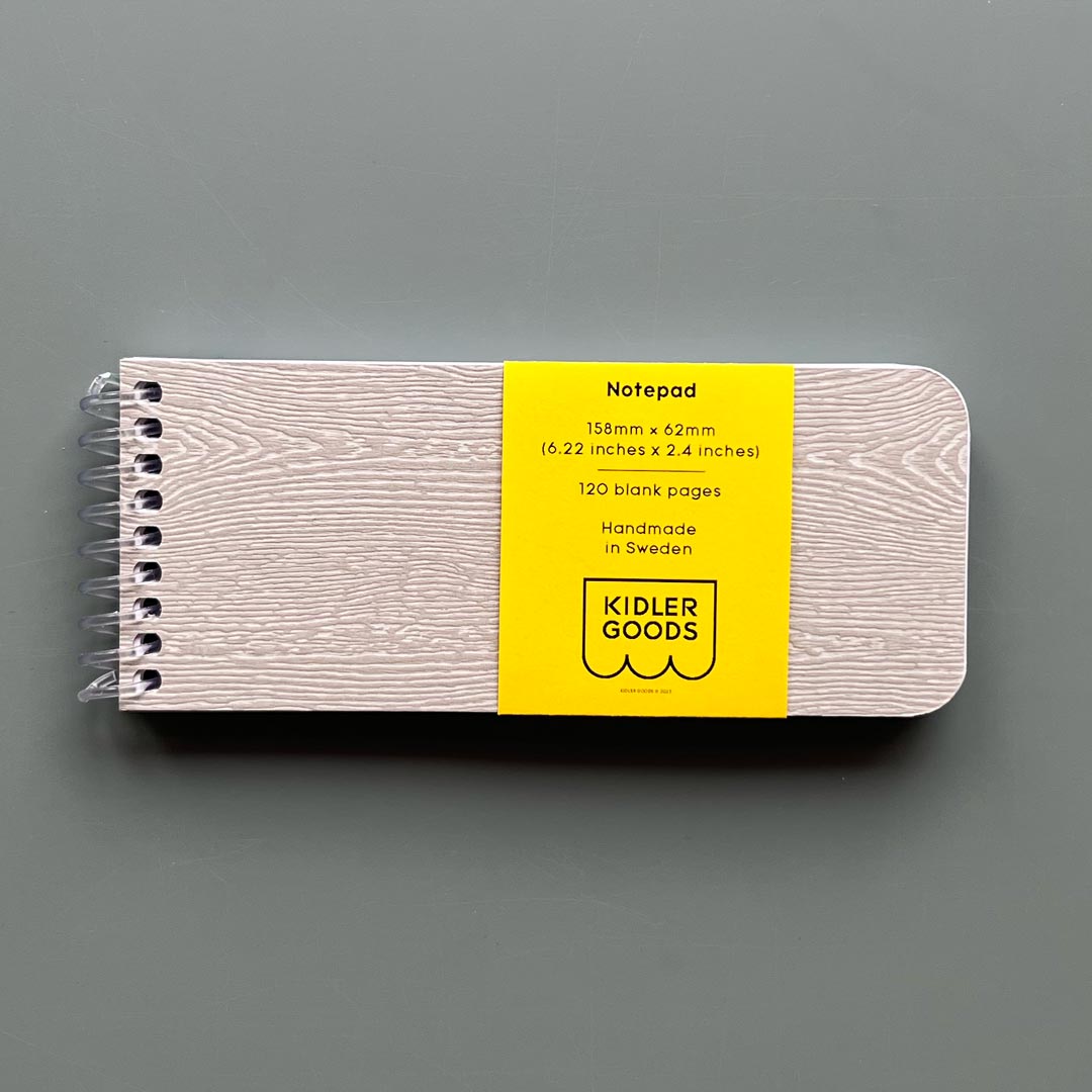 Dessa anteckningsblock med unik trästruktur på omslaget görs för hand i vår workshop. Blocket innehåller 120 tomma vita sidor och storleken är perfekt för att ta med och anteckna i. Omslaget består av vackert präglat kartongark som både ser ut och känns som trä. Spiralbindningen gör att du kan öppna anteckningsboken helt i 360° och sidorna fortfarande ligger platt.
